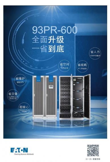 2020 年 3 月 27 日,全球動力管理公司伊頓面向全球客戶發(fā)布了具有鋰電性能的高效、易擴展的 93PR 模塊化 UPS創(chuàng)新解決方案,60kW 高功率單模塊設計節(jié)約 50% 占地,雙變換在線模式下 97.5% 的系統(tǒng)效率大幅降低整個生命周期的總擁有成本,幫助客戶優(yōu)化投資。