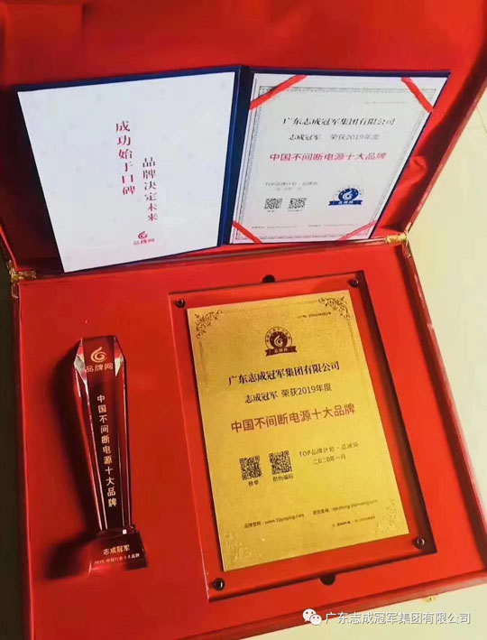 祝賀廣東志成冠軍集團有限公司“志成冠軍”品牌榮獲2019年度中國不間斷電源十大品牌