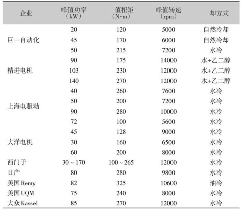 國內(nèi)外驅(qū)動(dòng)電機(jī)企業(yè)的永磁同步電機(jī)參數(shù)比較