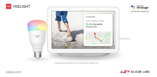 中國北京–2021年1月14日–致力于建立更智能、更互聯世界的領先芯片、軟件和解決方案供應商Silicon Labs(亦稱“芯科科技”,NASDAQ:SLAB)與全球320萬用戶首選的領先智能照明供應商Yeelight今日宣布:雙方合作推出一款新型智能LED燈泡,支持Google Home應用程序中的Seamless Setup。Yeelight的M2智能LED多色燈泡在設計中采用了Silicon Labs的藍牙BG21片上系統(SoC),可實現可靠的無線連接,并支持用戶在Google Home應用程序中連接和控制智能家居設備,而無需其他應用程序。