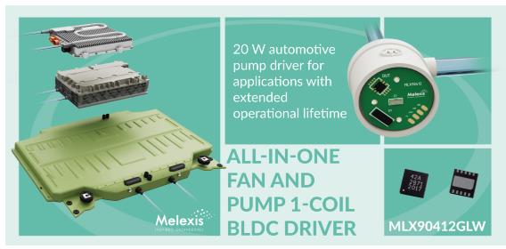 “能夠為全面的20W水泵產(chǎn)品組合提供多功能的一站式解決方案,我們深感自豪。MLX90412GLW是一款具有前瞻性的產(chǎn)品,滿足具有挑戰(zhàn)性的使用壽命需求,例如電動汽車中的電池冷卻,”Melexis的智能驅(qū)動器產(chǎn)品線經(jīng)理Dirk Leman表示。“這款芯片可節(jié)省空間,降低BOM成本,同時縮短開發(fā)時間。”