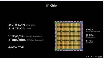 特斯拉推出的本身算力已非常強(qiáng)大,還能通過(guò)彼此互聯(lián)變得超級(jí)強(qiáng)大的D1芯片
