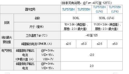 此外,東芝提供的同系列器件還包括TLP5702H(LF4)與TLP5705H(LF4),采用SO6L(LF4)封裝的引線成型選項。