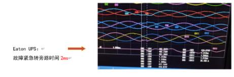 以下對比了Eaton UPS和友商某EXL系列UPS緊急轉旁路轉換時間: