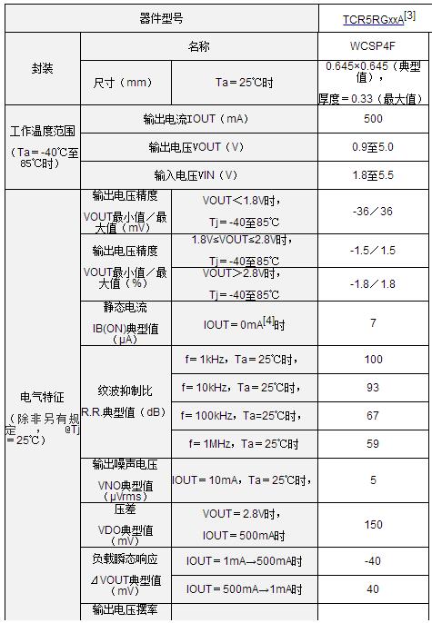 中國上海,2021年3月3日——東芝電子元件及存儲裝置株式會社(“東芝”)今日宣布,推出由45款LDO穩壓器組成的“TCR5RG”系列。該系列均采用輕薄、緊湊型WCSP4F封裝。新款LDO穩壓器擁有業界領先的[1]高紋波抑制比[2],能夠為可穿戴產品等移動設備的直流電源線提供更穩定的功率。該系列產品將從今日開始批量出貨。