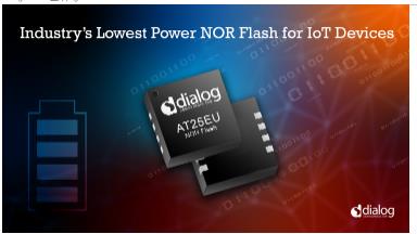 中國北京,2021年4月27日 – 領(lǐng)先的電池和電源管理、Wi-Fi、低功耗藍(lán)牙(BLE)、工業(yè)邊緣計(jì)算解決方案供應(yīng)商Dialog半導(dǎo)體公司(德國證券交易所交易代碼:DLG)今天宣布,推出AT25EU系列SPI NOR Flash器件,助力注重功耗、尺寸受限的聯(lián)網(wǎng)設(shè)備開發(fā)。AT25EU系列專注于實(shí)現(xiàn)最低的功耗和最快的運(yùn)行速度,從而實(shí)現(xiàn)最低的能耗。