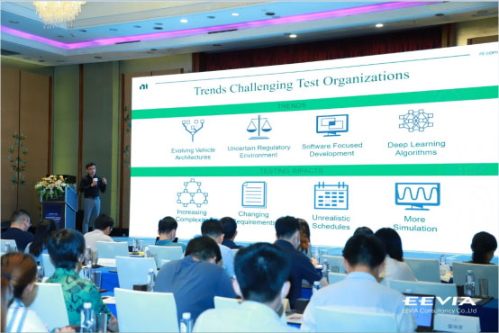 NI資深汽車行業(yè)客戶經(jīng)理郭堉表示:“目前自動(dòng)駕駛汽車測(cè)試面臨四大發(fā)展趨勢(shì):電子電氣結(jié)構(gòu),從原來(lái)的傳感器都有的ECU,到后續(xù)都用中央域控制器進(jìn)行處理等帶來(lái)的諸多新挑戰(zhàn);不斷完善的法規(guī)也會(huì)帶來(lái)很多新的測(cè)試需求和測(cè)試挑戰(zhàn);流行的軟件定義汽車,如特斯拉OTA技術(shù),都是通過(guò)軟件定義它的發(fā)展,軟件的投入和軟件的測(cè)試也非常重要;AI和深度學(xué)習(xí)也是非常火,這一塊主要部署在ADAS里面的一些算法,通過(guò)真實(shí)的道路場(chǎng)景,不斷優(yōu)化ADAS的算法,然后更好地識(shí)別目標(biāo)物,從而使汽車的安全性有更大提升。”由此帶來(lái)的測(cè)試挑戰(zhàn)就包括了測(cè)試的復(fù)雜度日益增加,自動(dòng)化測(cè)試的硬件和軟件需要不斷的迭代和更新。