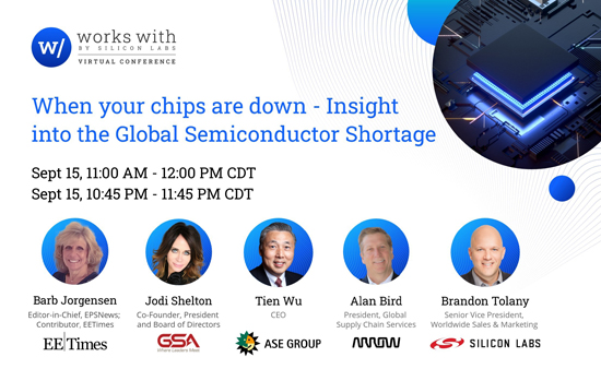 半導體供應鏈圓桌討論將探討全球半導體短缺問題,參與討論的專家來自全球半導體聯盟(GSA)、日月光半導體(ASE,Inc.)、艾睿電子和Silicon Labs。該圓桌討論將由Aspencore旗下媒體主編主持,題目為“當芯片供貨面臨嚴峻形勢”(When Your Chips Are Down),將探討導致當前半導體短缺的因素、供應鏈清晰透明的重要性以及緩解未來芯片缺貨的策略。