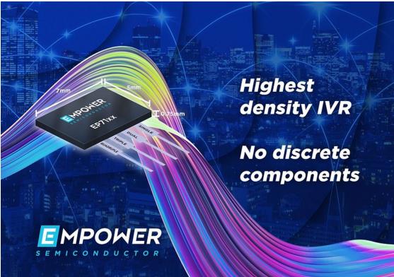EP71xx系列的封裝面積僅5mm x 7mm,高度僅0.7mm,采用單個FcCSP封裝,可提供高達12A的連續電流和多達4個穩壓器。這不僅可以提升效率,也可以降低各種運行條件下的損失。超快速瞬態響應,支持通過負載階躍進行調節,支持可編程的“ExpressV”按需動態電壓調節,速率可達6mV/ns。速度比同類競品快1000倍以上,可以實現快速、無損的處理器狀態切換,從而顯著降低處理器能耗。