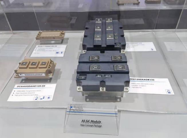 富士電機(jī)早在2014年就推出了平面結(jié)構(gòu)的全碳化硅模塊應(yīng)用在本社電力電子部門研發(fā)的光伏逆變器(1MW)中。相比較于傳統(tǒng)的硅模塊,損耗可以降低7成左右,達(dá)到了當(dāng)時(shí)的業(yè)界最高效率98.8%,獲得了市場(chǎng)的廣泛好評(píng)。2018年推出了基于第一代溝槽柵結(jié)構(gòu)的全碳化硅模塊。開發(fā)中的第二代SiC-Mosfet,通過芯片減薄和溝槽間距微細(xì)化技術(shù)T單位面積的導(dǎo)通電阻比第一代降低了23%。另外模塊內(nèi)部的端子結(jié)構(gòu)也進(jìn)行了重新設(shè)計(jì),大大降低了模塊的寄生電感。模塊的封裝外形將繼續(xù)保持與傳統(tǒng)的硅模塊的封裝兼容避免客戶在系統(tǒng)結(jié)構(gòu)上做重新設(shè)計(jì),節(jié)省開發(fā)資源。預(yù)計(jì)將會(huì)在2023年進(jìn)行量產(chǎn),主要面向EV、風(fēng)力發(fā)電、太陽(yáng)能發(fā)電、高壓變頻器等各類高壓應(yīng)用。