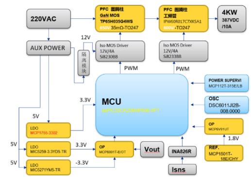 圖示3-大聯(lián)大品佳基于Microchip產(chǎn)品的4KW圖騰柱PFC數(shù)字電源方案的方塊圖