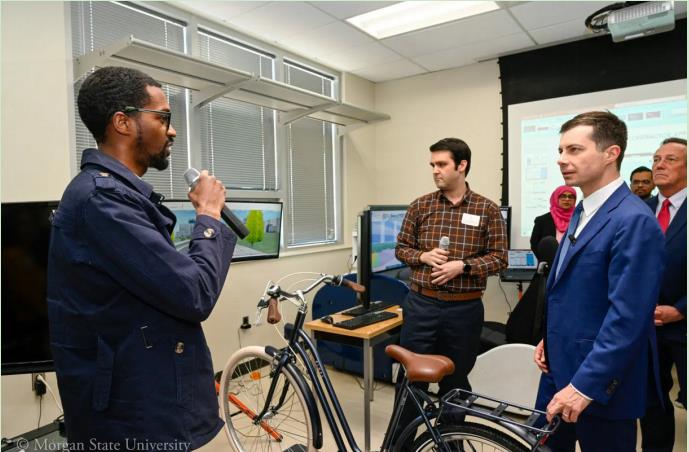 摩根州立大學(xué)是位于美國(guó)巴爾的摩市的黑人大學(xué),歷史悠久。此次接待了美國(guó)交通部部長(zhǎng)Pete Buttigieg的訪問(wèn),帶領(lǐng)他參觀了校園及國(guó)家交通中心實(shí)驗(yàn)室。在參觀校內(nèi)的城市出行與公平中心時(shí),Pete Buttigieg部長(zhǎng)重點(diǎn)了解了Velodyne的智能基礎(chǔ)設(shè)施解決方案(IIS),查看了由VelodyneUltra Puck傳感器生成的多傳感器輸出數(shù)據(jù),并與在校學(xué)生共同探討了智能基礎(chǔ)設(shè)施解決方案(IIS)的未來(lái)潛在應(yīng)用。該解決方案由Velodyne與Bluecity和Iteris合作部署,安裝在校園內(nèi)的一個(gè)主要十字路口處,以收集交通數(shù)據(jù)并進(jìn)行安全分析。