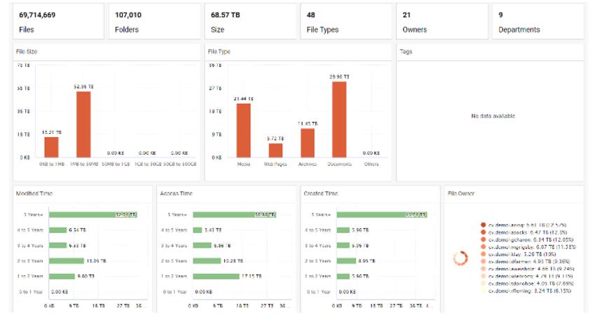 Commvault通過Commvault®File Storage Optimization幫助用戶超越備份和恢復(fù)范疇,直接在用于備份和恢復(fù)操作的用戶界面——Commvault Command Center上提供豐富的數(shù)據(jù)洞察,并且以便于查看的儀表盤形式呈現(xiàn)。這些可以幫助用戶識別ROT數(shù)據(jù)并采取合適的操作將其從遷移中排除。通過諸如最后修改、訪問或創(chuàng)建時間等洞察(所有這些都按年份分組),用戶可以區(qū)分重要的文件和ROT數(shù)據(jù),將正確的數(shù)據(jù)更快地遷移到需要的地方。這有助于節(jié)省存儲成本,減輕IT人員的壓力并提高數(shù)據(jù)所有者的生產(chǎn)力。