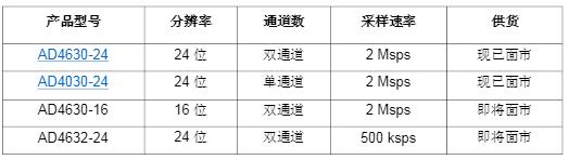 雙通道AD4630-24和單通道AD4030-24現已上市,另外四款SAR ADC將會在今年推出。