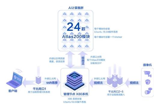 AES-100采用華為Atlas200邊緣智能計算核心,在1U空間內最多可支持24路Ascend310并行處理,最高具備了528TFLOPS算力;