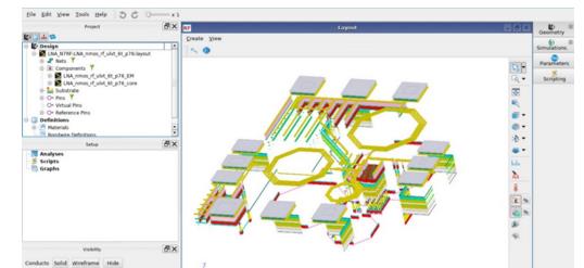 PathWave RFPro主設定視窗可顯示使用TSMC N6RF技術設計的低雜訊放大器