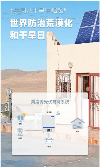 6月17日,是第28個世界防治荒漠化和干旱日,全球宣傳主題是:“共同從干旱中崛起”。英威騰攜手綠色光伏,為荒漠中的人們點亮微光。