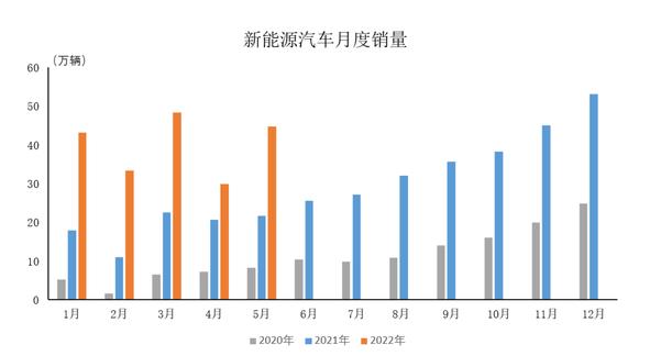 2022年1-5月新能源汽車月度銷量,數據來源:中汽協