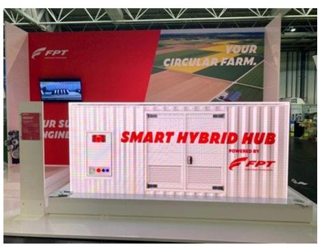 參觀者可以看到發(fā)電機(jī)組概念的“內(nèi)部”,并通過LED墻觀看從農(nóng)業(yè)生產(chǎn)到發(fā)電、最終滿足農(nóng)場(chǎng)內(nèi)外需求的整個(gè)循環(huán)。這一概念基于第一臺(tái)用于發(fā)電的F28變速低壓甲烷發(fā)動(dòng)機(jī),它從農(nóng)業(yè)廢棄物和牛糞厭氧消化中獲得燃料。該發(fā)動(dòng)機(jī)與菲亞特動(dòng)力科技的混合動(dòng)力控制管理系統(tǒng)相連,根據(jù)任務(wù)情況,采用開放式配置,包括電池和等效逆變器。