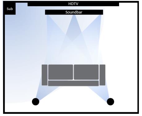 入門級條形音箱只是電視機內置揚聲器的擴展——可以通過HDMI或光纖輕松地連接,能在一定程度上提供更好的音頻體驗。有些可能帶有與條形音箱之間采用無線連接的超重低音揚聲器(又稱低音炮),以提供增強的低音。盡管這種設置很方便,但有限數量的揚聲器永遠無法提供與HDTV中現有的視頻體驗相同的音頻體驗。將音頻質量提升到視頻質量水平的唯一方法是讓聲音環繞自己,而做到這一點的唯一方法是在觀眾前后都安裝揚聲器。