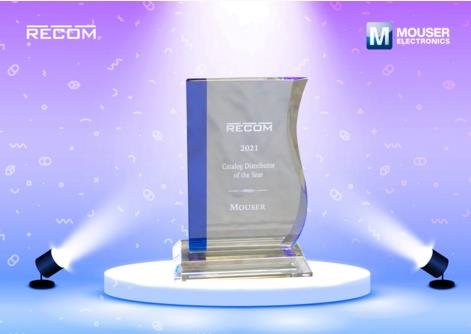 2022年7月6日–提供超豐富半導體和電子元器件的業界知名新品引入(NPI)分銷商貿澤電子(Mouser Electronics)很高興地宣布榮獲RECOM Power Inc.頒發的2021年度目錄分銷商獎。RECOM Power Inc.是一家專門生產AC/DC和DC/DC轉換器及開關穩壓器的電源制造商。在頒獎典禮上,RECOM表彰了貿澤在新產品引入和全球客戶增長方面的卓越表現。