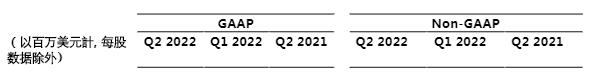 下表概列2022年第2季度與可比較時(shí)期的部分財(cái)務(wù)業(yè)績(jī)(未經(jīng)審計(jì)):