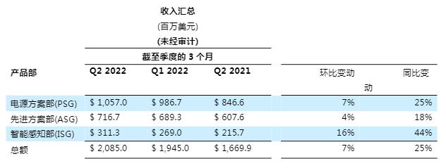 安森美總裁兼首席執(zhí)行官(CEO)Hassane El-Khoury說(shuō):“我們執(zhí)行業(yè)務(wù)轉(zhuǎn)型的能力繼續(xù)帶來(lái)創(chuàng)紀(jì)錄的業(yè)績(jī),第二季度收入同比增長(zhǎng)25%,non-GAAP毛利率增長(zhǎng)1,130個(gè)基點(diǎn)至49.7%。這些財(cái)務(wù)業(yè)績(jī)足以證明公司在市場(chǎng)上的持續(xù)增長(zhǎng)勢(shì)頭,以及我們的智能電源和智能感知方案的差異化。在汽車(chē)功能電子化、先進(jìn)駕駛輔助系統(tǒng)(ADAS)、能源基礎(chǔ)設(shè)施和工廠自動(dòng)化等加速發(fā)展的大趨勢(shì)中保持領(lǐng)先地位,使得我們能擴(kuò)大長(zhǎng)期供應(yīng)協(xié)議并提高需求的可視性。我們對(duì)前景保持樂(lè)觀,同時(shí)對(duì)不斷變化的市場(chǎng)狀況保持敏銳度。我們?cè)谶^(guò)去18個(gè)月中實(shí)施的結(jié)構(gòu)性改革,減少了財(cái)務(wù)波動(dòng),我司已更具韌性,可適應(yīng)及應(yīng)對(duì)各種商業(yè)環(huán)境。”