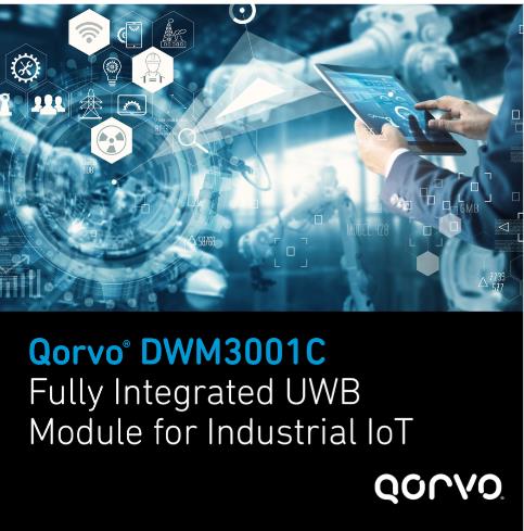 DWM3001C現已上市。如需了解Qorvo的創新超寬帶技術如何在移動、汽車、工業和消費物聯網市場和應用中創造新的可能性,請訪問Qorvo的超寬帶主頁。有關更多技術見解,請參見此處Qorvo提供的一系列超寬帶博客文章。