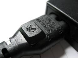 但我還是第一次使用沒有地線的筆記本電源適配器。以前使用的產品都是使用帶地線的3個插頭的電源是輸入線。我總是擔心較大的電源線插頭和筆記本一起裝在計算機包里受到擠壓的時候會壓碎液晶屏。