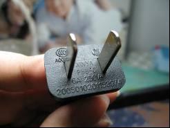背面印著他主要的技術參數。可以看到CCC,CE等 。可以發現背后的參數標簽是和模具一起刻的,并不是市場上大多數“公模”產品那樣磨具都一樣只換個標簽了事。看來這套模具是航嘉為了“易配”專門開發的。