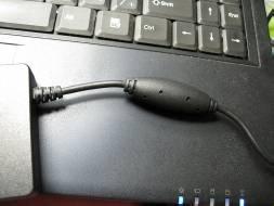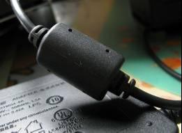 在電源的輸出端有著像棗核形狀的屏蔽磁環,連這個配件都一改以往電源適配器的圓柱體形狀設計看來航嘉的設計師真的是用心了。