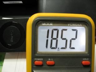 測試空載電壓為18.52V,我的臺達電源實際輸出為18.52V,當然我的3位半數字表也存在一定的誤差。這些都不會影響筆記本的正常使用。以前測試過我的筆記本只要電源電壓高于17V就可以正對電池充電和使用。