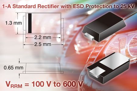 日前,Vishay Intertechnology, Inc.(NYSE 股市代號:VSH)宣布,推出ESD保護高達25kV的系列低尺寸表面貼裝整流器 --- MSE1Px。
