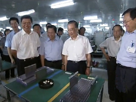 日前,中共中央政治局常委、國務院總理溫家寶帶著黨中央、國務院對企業的關懷和厚愛,來到南通富士通微電子股份有限公司視察。國家發改委主任張平,工業和信息化部部長李毅中,江蘇省委書記梁保華、省長羅志軍,南通市委書記羅一民等中央、省、市領導陪同考察。