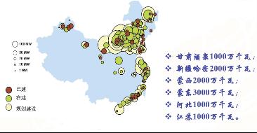 圖1 中國已建、在建和規劃建設風電場分布圖