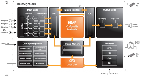 圖1:安森美半導體BelaSigna® 300音頻處理器的功能模塊圖