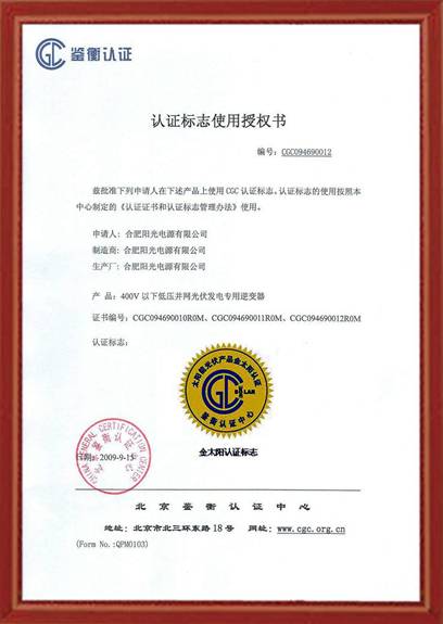 此次通過認證的并網逆變器,是根據《400V以下低壓并網光伏發電專用逆變器技術要求和試驗方法》的要求,由北京鑒衡認證中心負責,中國電力科學院測試,并經過全面、嚴格的工廠審查。認證的順利通過,表明陽光電源的并網逆變器已經能夠完全滿足國內外各種太陽能光伏并網發電系統的配套需求,也為財政部“金太陽工程”的眾多項目提供了質量保證。■