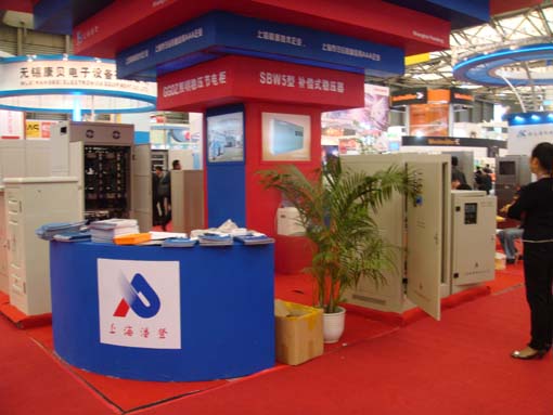 上海潘登新電源有限公司參加了2009年11月3日-7日“中國工博會”,這是我公司第六次參加這一盛會,此次展示了公司所有自己制造生產的電源設備,有在行業中處于領先地位的大功率無觸點穩壓器,還有針對市場需求的玻璃鋼機箱外殼的GGDZ照明穩壓節電柜, 此兩款產品吸引了國內外參觀者的很大興趣。