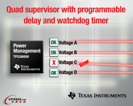 日前,德州儀器 (TI) 宣布推出具備可編程延遲與看門狗定時器的四通道電源電壓監控器 (SVS) 產品系列,可最大限度地縮減當前多軌電源設計的板級空間。TPS386000、TPS386020、TPS386040 以及 TPS386060 監控器均可監控電壓超過 0.4V 的 4 個電源軌,閾值精度誤差為 0.25%。這種高精度與集成看門狗定時器相結合,可為系統提供高可靠性,滿足基于處理器的應用需求。TPS386000 系列器件可為每個監控器通道提供獨立的可編程延遲輸入,延遲時間可針對電源排序在 1.25ms 至 10 秒之間進行設置。