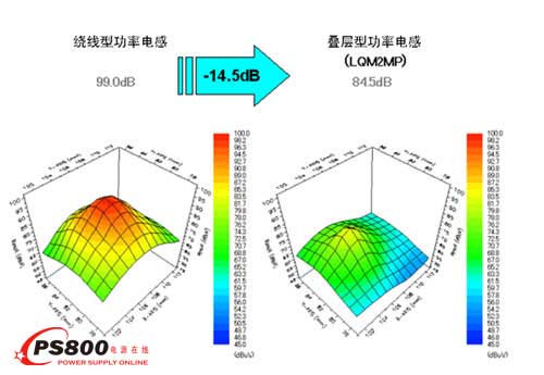 另外,在移動設備多功能化進程中,對機器的小型、薄型化要求也逐步提升。為此就必須減少元件的使用數量,或者將元件做到更小。此對策是借由提高DC-DC轉換器的開關頻率,減小必要的功率電感和電容的額定參數值,以此來適應元件的小型化。將集中控制電源的PMIC(PowerManagementIC)的開關頻率,將從一直使用的1MHz變?yōu)?MHz,還有管理單獨電源的DC-DC轉換器IC中主流頻率一直是3~4MHz,對于此種情況,作為主要元件的功率電感就需要1.0uH到2.2uH的低感值產品。而開關頻率數的提高使靜噪成為必須,為了解決這些課題,推動了功率電感的開發(fā)。