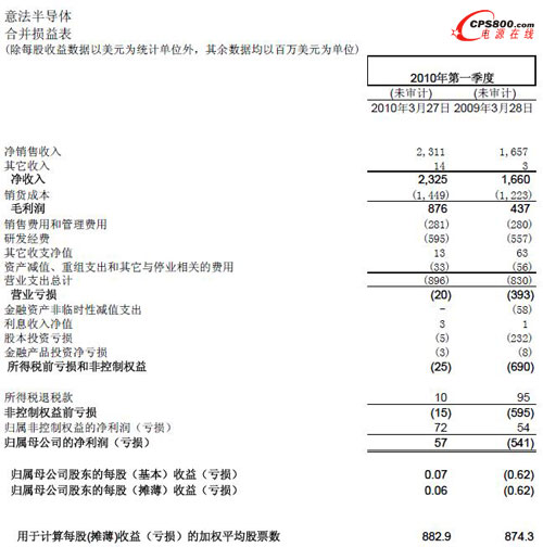 “去年,我們重點落實重要的戰略行動,以重構我們的產品組合,提高公司運營效率。因此,2010年第一季度公司扭虧增盈,我們實現凈利潤5,700萬美元,每股攤薄收益0.06美元。這讓我們非常高興,因為第一季度收入比公司歷史巔峰數字低20%,而且ST-Ericsson還沒有擺脫虧損。ST-Ericsson正在努力實現具有競爭力的成本結構,同時正在積極地推出新的產品平臺。