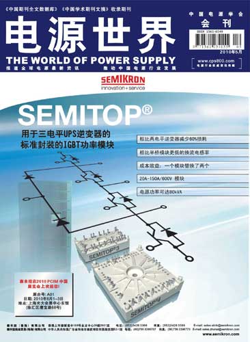 本期《電源世界》將聚焦世博會中與電源行業相關的綠色節能技術的應用,關注城市生活與電源行業綠色節能息息相關的話題,詳情請關注本期深度報道欄目《綠色城市 讓生活更美好》,市場縱橫欄目《世博會國家電網館——城市“智能化”的先行者》,以及技術文章《淺談高速動車組電力牽引傳動控制系統》《安森美半導體高能效LED通用照明解決方案》等。