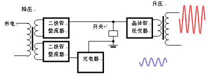 這種早期的工頻機UPS輸入端是降壓變壓器,輸出端是升壓變壓器;另一個特點是輸入整流器和后面的逆變器都工作在工業頻率,即50Hz(或60Hz)。在一些中小功率UPS中,輸入整流器和充電器是分開的。這主要是因為在這些UPS中的輸入整流器都是采用的沒有任何調整能力的整流二極管,而電池電壓的電平必須是穩定的,需要嚴格控制的,所以一般需另設具穩壓功能的充電器電路,如圖2所示。在小功率中,早期的充電器一般用一個穩壓塊,到后來才采用了PWM開關電源,提高了充電速度和充電效率。由于中小功率UPS中采用的電池電壓很低,所以輸出還要加升壓變壓器。后來由于器件的發展才取消了輸入降壓變壓器,成了今天的樣子。