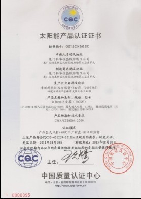 金太陽認證是中國可再生能源領域內最權威的認證品牌,由中國質量認證中心(CQC)與鑒衡認證中心(CGC)共同發證。認證產品只有通過CQC安全性能測試和EMC測試,同時公司管理水平需滿足CQC工廠審核要求,方能取得金太陽認證。認證的取得將為KELONG產品參與工程競標提升競爭力,并增強品牌影響力。