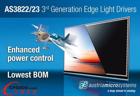 AS3822和AS3823兩款LED驅動芯片分別擁有6通道及8通道,并完全兼容最近推出的16 和12通道的AS3820以及AS3821 LED驅動器。這種兼容性能夠使制造商使用相同的硬件設計和軟件生產全系列的LED側光式電視。該系列驅動芯片都采用奧地利微電子增強型數字功率反饋控制技術,可最大程度地降低能源消耗。此外,智能調光功能也可以進一步降低功耗,同時滿足最新款3D電視的設計以及最高的圖像質量的需求。
