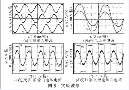 文中介紹的電鍍用開關電源,其滿載輸出功率為60kW,輸出電壓為12V,輸出電流為5kA,且連續可調。通過采用三相PWM整流技術控制相電流實現正弦波。理論分析、仿真及實驗表明,該電路實現了輸入電流的高功率因數整流和低電流畸變,有效抑制電鍍電源的網側電流諧波。同時采用全橋零電壓軟開關控制方式,有效減少了功率損耗。