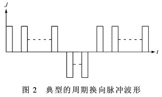 常見的脈沖電流波形有方波、三角波、鋸齒波、階梯波等。根據確定脈沖波形的幾點原則(如實鍍效果、便于分析和研究、易于獲得和調控、便于推廣等),方波是最符合要求的脈沖波形。典型的方波脈沖波形,如圖1所示。由圖1可知:脈沖電流實質上是一種通斷的直流電。