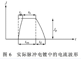 傳統的直流電鍍只有電流或電壓可供調節,而脈沖電鍍有脈沖電流密度(或峰值電流密度)Jp、脈沖導通時間ton和脈沖關斷時間toff3個獨立的參數。由ton和toff可以引出脈沖占空比γ。