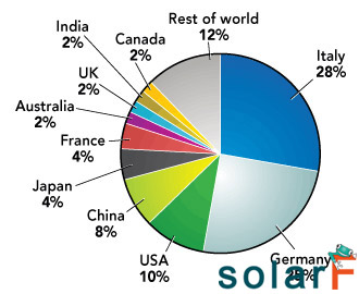 2011年光伏市場世界前10占全球安裝量比例