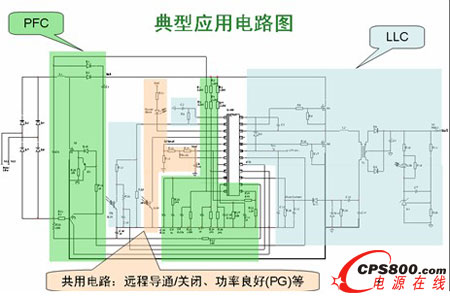 圖1是采用NCP1910的典型應用電路圖共用電路,它包括遠程PFC段、LLC段,以及實現(xiàn)導通/關閉、功率良好(PG)等的共用電路。